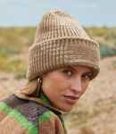 50% recycled polyester/50% acrylic. Heavyweight multi yarn design. Engineered crown. Double layer turn up cuff. Reverse knit cuff for decoration (15 x 5cm). Tear out label.